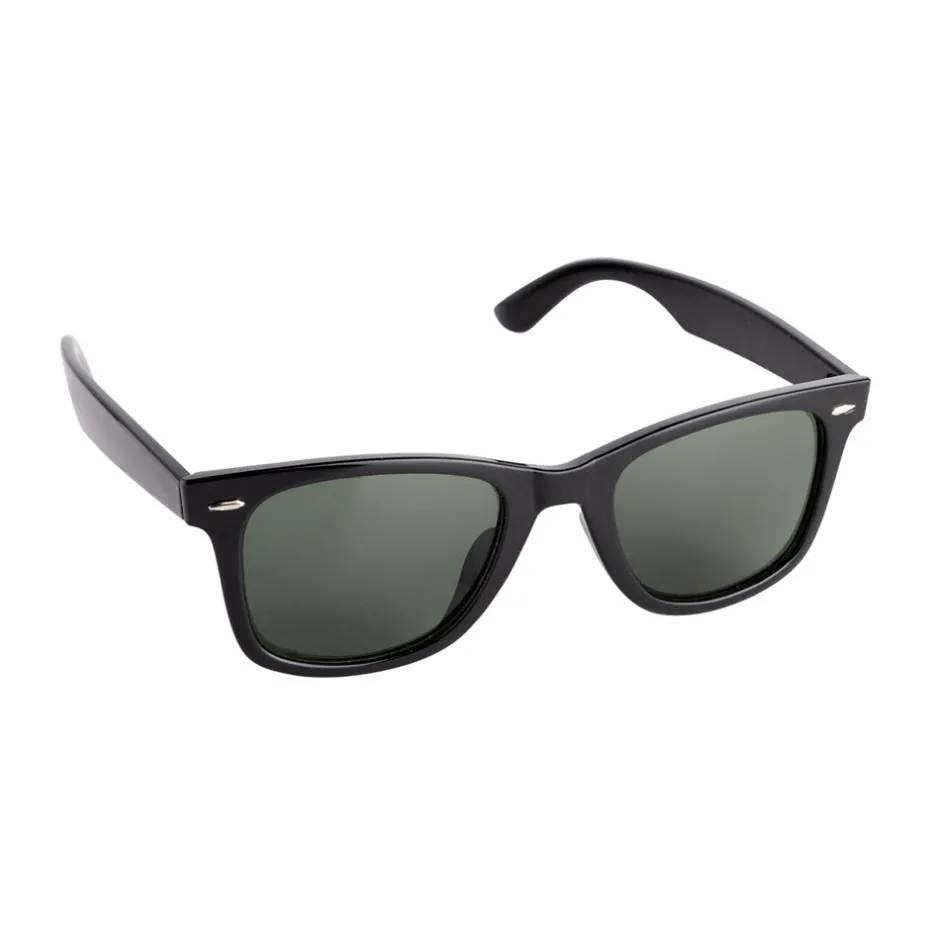 Tyylikäs miesten wayfarer aurinkolasimalli kesäkaduille.Kehys musta, linssin väri G15 vihreä.100 % UV-suoja. Linssi…